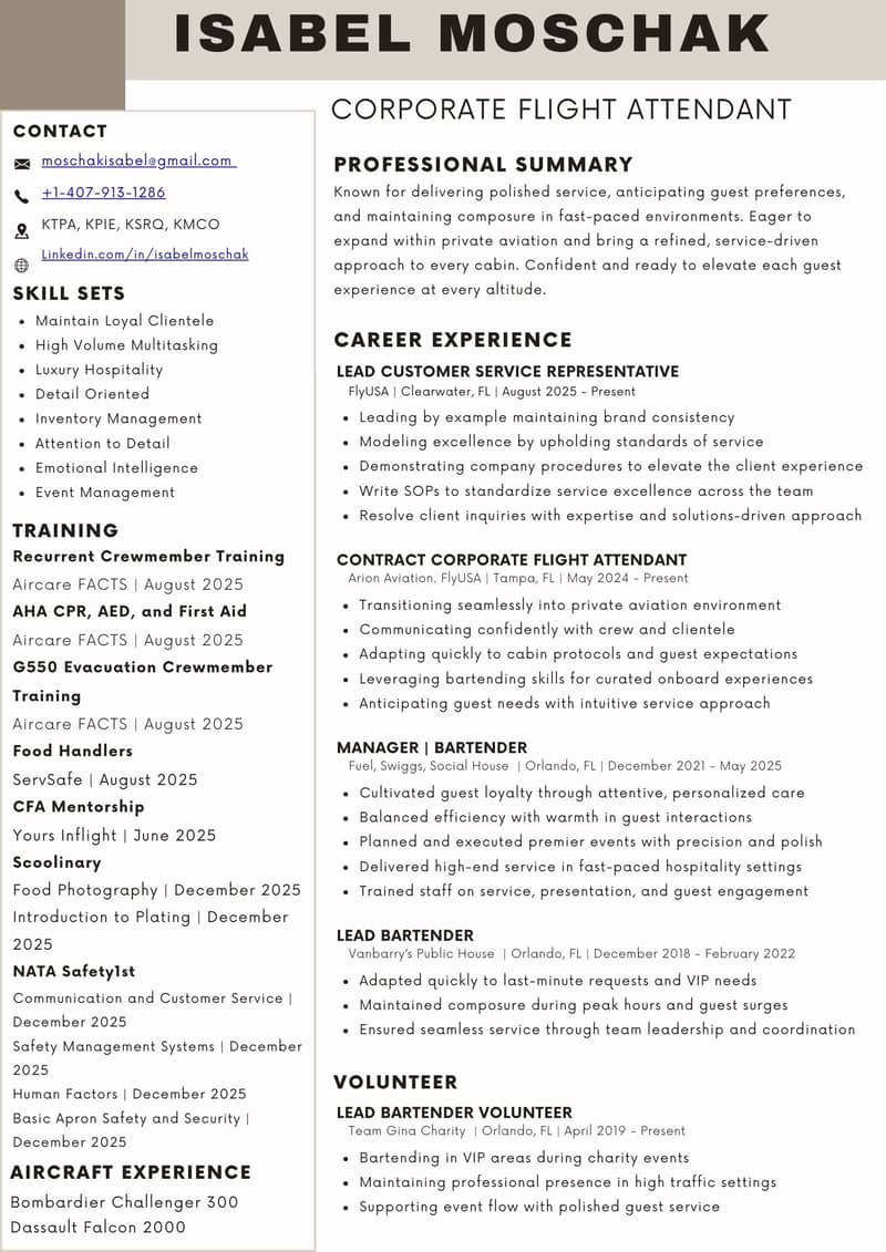 Isabel, commited to delivering bespoke service with grace, precision and descretion at every altitude. With a foundation in hospitality and a passion for elevated guest experience, all needs are anticipated to curate a sophisticated and seamless journey.